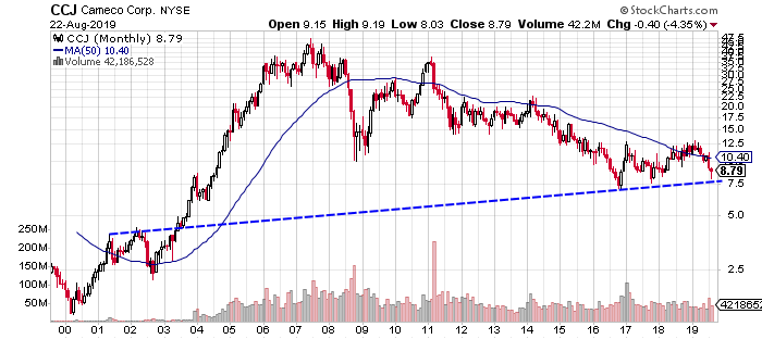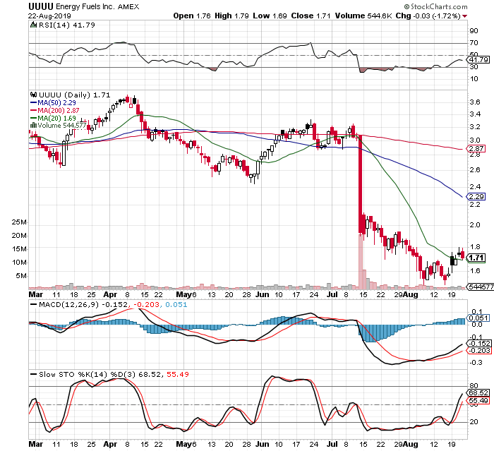 Wer die Situation am Uranmarkt kennt und die Charts der Uran-Aktien sieht, muss nun ein erstes Engagement wagen. Dies habe ich am 19. August im Wikifolio getan. Gekauft wurde der weltweit größte börsennotierte Uranproduzent Cameco. Als zweites Standbein nahm ich die Aktie Energy Fuels auf, die mit vernünftiger Bewertung sowie gesunder Bilanz überzeugt. Zudem hält das Unternehmen Beteiligungen an vielversprechenden Vanadium-Projekten.