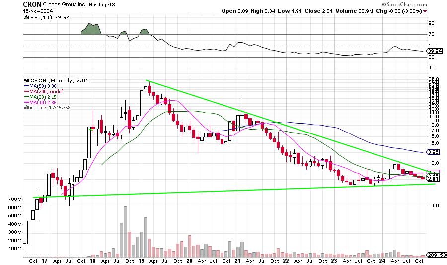 Dazu passt die politische Komponente. Die Aktien kamen direkt nach der US-Wahl unter extremen Verkaufsdruck, weil die als Cannabis-freundlich geltende Präsidentschaftskandidatin krachend verlor. Falls Donald Trump mit Matt Gaetz als Justizminister und Robert F. Kennedy Jr. als Gesundheitsminister seine – für viele Beobachter überraschenden – Kandidaten durchsetzt, wird diese Regierung am meisten pro-Cannabis in der Geschichte der USA sein. Damit würden die Aussichten für den Cannabissektor extrem bullish.
