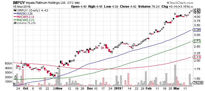 Wenn Sie dann noch nachfolgend den Chart der südafrikanischen Platinaktie Impala betrachten, staunen Sie wahrscheinlich über den extremen Höhenflug mit beinahe Verdreifachung seit Oktober 2018.