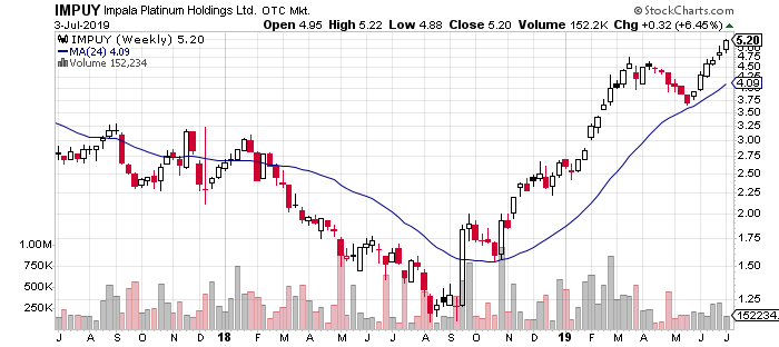 Einschläfernd wirkt auch Platin auf viele Anleger. Hellwach sollten jedoch Sie sein und die im Kurs explodierende Platinaktie Impala aus Südafrika be(ob)achten. Oben ist sie abgebildet. In den letzten zehn Monaten hat sich die Aktie im Kurs beinahe verfünffacht. Sie wird Platin den Weg weisen.
