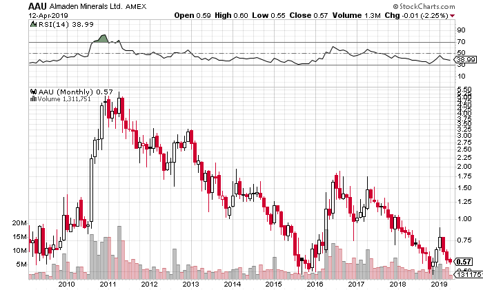 Besonders bei solchen Rücksetzern lohnt sich ein Einstieg in Aktien, wie meinen Wikifolio-Wert Almaden Minerals. Schon jetzt sind hier erste Käufe vertretbar. Das Unternehmen hat gute Chancen übernommen zu werden. Was aber schade wäre, denn in diesem Fall sieht die Aktie höchstwahrscheinlich nicht mehr ihren zehnfachen Kurs aus dem Jahr 2011.