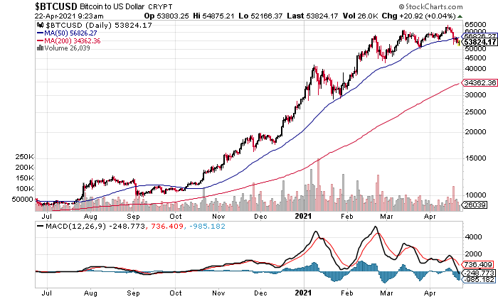 Über Bitcoin und die Kryptowährungen lasse ich mich normalerweise nicht aus, obwohl – und vor allem weil – es die größte Blase der Finanzgeschichte ist. Auch sollte man nicht versuchen, gleichzeitig auf mehreren Partys zu tanzen. Heute erlaube ich mir eine kurze Ausnahme. Denn viele Edelmetall-Freunde tummeln sich auch in den Kryptos, und es gibt nun erste Anzeichen dafür, dass die Begeisterung für den Bitcoin bald bröckelt. Erstmals seit Oktober ist der Kurs unter die 50-Tage-Linie gerutscht. Die Spekulanten haben sich daran gewöhnt, dass Korrekturen schnell ausgebügelt und neue Hochs erklommen werden. Im Sommer 2020 war dies bei den Edelmetallen und Minenaktien auch so. Die meisten Anleger erwarteten allenfalls eine milde und kurze Korrektur. Tatsächlich zog sie sich dann bis jetzt acht Monate hin und warf besonders den Goldpreis und die Minen stark zurück. In dieser Gefahr befindet sich nun der Bitcoin. Wer in Silber umschichtet, steckt nicht mehr in einer Bubble, sondern hat sie noch vor sich.
