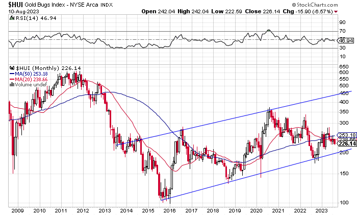 Beim Gold konnte die Fed dreimal den großen und nachhaltigen Ausbruch über 2000 Dollar vereiteln. Doch die Notenbankster werden auch bei der Drückung des Goldpreises, wodurch sie die meisten Rohstoffpreise plus Inflation in Schach halten wollen, scheitern. Nicht nur, weil Triple Tops rar sind. Die jahrelange Manipulation wird dafür sorgen und Garant sein, dass nach dem Überwinden des letzten Hochs bei 2090 Dollar der Deckel wegfliegt und eine außergewöhnlich starke und dauerhafte Rallye einsetzt. Wahrscheinlich startet ein neuer Anlauf schon im August, nachdem die heutige Veröffentlichung der US-Verbraucherpreise den Goldpreis nicht schwächen konnte. Wie stark und schnell es von einem Augusttief nach oben geht, hängt auch von der Entwicklung an der US-Börse ab. Im Ideal- und wahrscheinlichsten Fall sorgt ein schwacher Aktienmarkt dafür, dass sich die Fed weitere Zinserhöhungen verkneift und die Anleger in Richtung Sicherheit umschichten – also vor allem in Staatsanleihen und Gold. Neue Allzeithochs in diesem Jahr und 3000 Dollar in 2024 wären dann keine Überraschung.