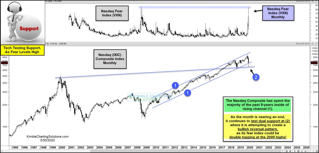 Im oberen Teil des Schaubilds erkennen Sie, dass die Verzweiflung der Anleger Mitte März den Extremwert des Jahres 2008 erreicht hat. Dies bedeutet nicht, dass die Kurse nicht weiter fallen können, doch es spricht für eine deutliche temporäre Erholung.