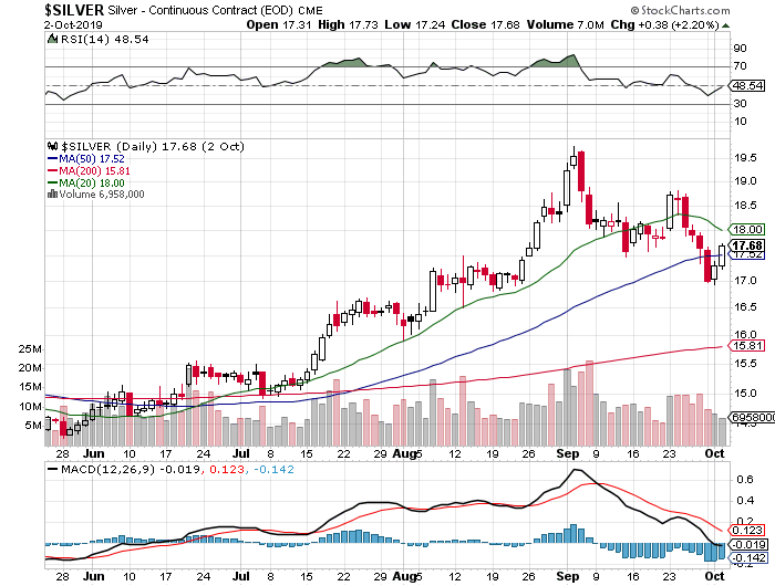 Umgesetzt habe ich dies im Wikifolio Wolfs Wahl – Gold-Silber-Platin mit dem Call Optionsschein auf Silber mit der WKN UY6JXC. Nach mehreren Tagen schwacher Silberpreise griff ich am letzten Septembertag zu 1,37 Euro zu. Zwei Tage später konnte ich die Position zum Kurs von 1,93 Euro und damit knapp 41 Prozent Gewinn verkaufen.
