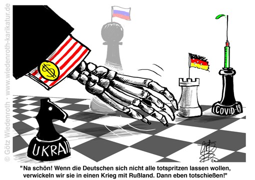 Mit der Plandemie flog vor zwei Jahren der erste Hinkelstein in die Oberstübchen und die beschaulichen Wohnzimmer. Da das Corona-Märchen nicht mehr zieht, muss(te) dringend ein möglichst gleichwertiger Nachschub an Angst und Schrecken her. Nachdem „Klimakrise“ aufgrund hoher Energiepreise für viele Bürger zum Reizwort wird und als Angstmacher ausfällt, steht nun KRIEG(sgefahr) auf dem Programm. Entpuppen sich die Kriegstrommeln nicht als Theaterdonner, werden die Deutschen wieder einmal als Kanonenfutter dienen.