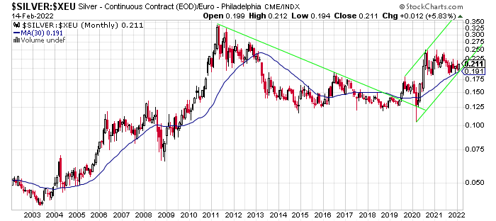 Strategisch kommen Sie an Edelmetallen, Öl und anderen Rohstoffen gar nicht vorbei, wenn Sie die Kaufkraft sichern wollen. Dazu gehört als Basis physisches Gold und Silber. Wie wichtig Barren und Münzen sind, zeigt gerade der durchgeknallte kanadische Premierminister Trudeau, der das Kriegsrecht ausgerufen hat und den protestierenden LKW-Fahrern die Konten sperren will. Dank der eineinhalbjährigen Konsolidierungsphase können Sie jetzt Gold, Silber und Platin billig kaufen. Diese Möglichkeit wird nicht lange bestehen, denn der Goldpreis hat nun erstmals seit Anfang August 2020 die Trendfolge tieferer Hochpunkte durchbrochen.