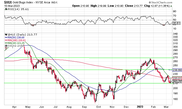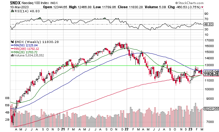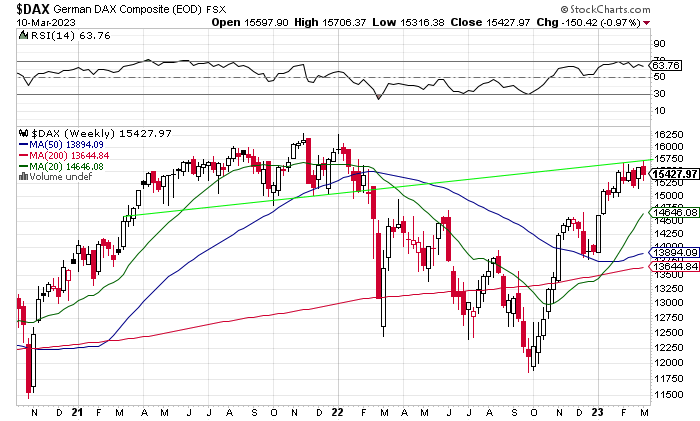 Gehen Sie besser nicht davon aus, dass die US-Notenbank nun panisch die Geldschleusen öffnet und der Aktienmarkt sofort in lichte Höhen steigt. Denn in aller Regel ist eine sehr schwache Börse sowie eine eingestandene Rezession Voraussetzung für einen Kurswechsel der Fed. Frühere Aktien-Bärenmärkte setzten sich nach der ersten Zinssenkung noch Monate fort. Mit hoher Wahrscheinlichkeit wird dadurch der Tiefpunkt und die große strategische Kaufchance für Aktien ins Jahr 2024 fallen. Natürlich wird es schon vorher eine Zwischenerholung geben – vorzugsweise von einem Tief im April als Startpunkt. Bis dahin sollten Sie auf der Hut sein, denn der Rückgang in den nächsten Wochen könnte kräftig ausfallen in einem Umfeld von Hiobsbotschaften und taumelnden Banken. Beachten Sie die US-Notenbanksitzung am 21./22. März für das taktische Vorgehen. Meist werden die Aktienkurse vor einem solchen Termin nach oben „gepflegt“. Sollte dies auch jetzt passieren, rechne ich mit einem deutlichen Rückgang der Aktienkurse nach dem Fed-Treffen. Am meisten gefährdet wären dann Nasdaq- und Ölwerte.