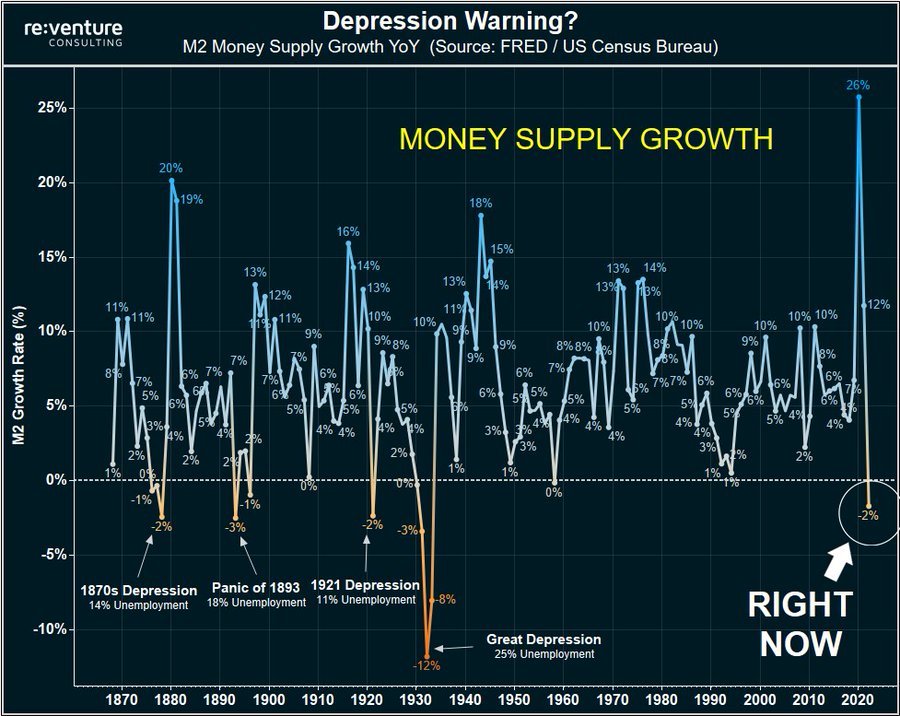was würden Sie tun, wenn Sie an den wahren Schalthebeln der Macht sitzen und eine Kernschmelze des Finanzsystems befürchten? Kämen Sie (auch) auf die Idee, die Märkte immer wieder mit frischem Geld zu fluten? Und dazu die Bürger mit einem Ereignis so in Angst zu versetzen, dass diese die plötzliche Geldschwemme sogar begrüßen? „Die Pandemie“ war Anfang 2020 Ereignis und Vorwand, um die Geldmengen explodieren zu lassen, nachdem im September 2019 der US-Repo-Markt unübersehbar in Schieflage geriet. Die Notenbanken übertrafen sich beim Gas geben und lösten einen – künstlichen – Boom aus. Da die Zentralbank(st)er in aller Regel Probleme lösen wollen, die ohne ihr eigenes Agieren gar nicht entstanden wären, treten sie seit Monaten massiv auf die Bremse und demonstrieren/heucheln Besorgnis über die von ihnen ausgelöste Teuerungswelle. Als Folge liegen die monetären Inflationsraten jetzt in vielen wichtigen Ländern – mit Ausnahme Chinas – auf Rekordtiefs oder in deren Nähe. So herrscht in den USA aktuell eine monetäre Deflation von rund fünf Prozent, da die Geldmenge ca. fünf Prozent niedriger als vor einem Jahr ist. Leicht ist auch die Eurozone in die monetäre Deflation gerutscht. Damit ist klar, dass wir im Übergang von BOOM zu BUST stecken. Besonders die Aktien- und Immobilienmärkte haben bei diesen monetären Bedingungen giftigen Gegenwind.
