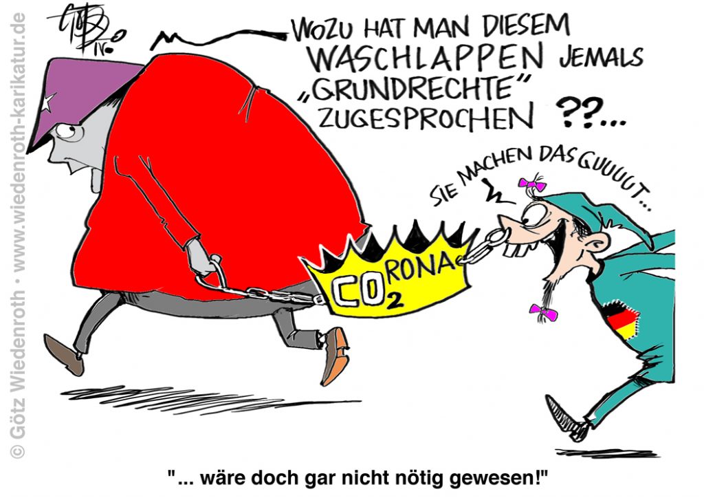 wenn Sie die ersten 19 Zeilen meines Buches gelesen haben, wissen Sie, dass ich mich wundere, warum Angela Dorothea im Kanzleramt statt im Gefängnis sitzt. Bei Rechtsbrüchen und (auf demokratische Gepflogenheiten pfeifenden) Entscheidungen zu Lasten Deutschlands ist sie historisch unerreicht. „Die Pandemie“ gibt „Mutti“ nun den Rückenwind, ihr Vernichtungswerk zu vollenden. Das Etikett „Mächtigste Frau der Welt“ für die watschelnde, ferngesteuerte, intellektuelle und optische Zumutung ist der Schenkelklopfer schlechthin und sorgt maximal für gesundheitsgefährdende Zwerchfellerschütterungen. Aber die Mehrheit der Deutschen lacht seltener, muckt nicht auf, sondern folgt ihren Führern in den Untergang. Nein, ich werde keinen Vergleich mit den zwölf Regierungsjahren eines anderen deutschen Kanzlers anstellen. Ich fürchte mich nämlich vor dem Ergebnis.