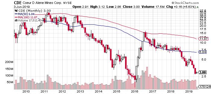 Diese Aktie verspricht extreme Kursgewinne, wenn der Goldpreis in US-Dollar deutlich steigt. In den meisten anderen Währungen ist dies ja schon der Fall. Denn Coeur hat seine Minen in Nordamerika, eine hohe Förderung zu hohen Kosten und damit einen hohen Hebel für dramatische Sprünge in rote und schwarze Zahlen. Da dieser Hebel in beide Richtungen wirkt, können solche Minen zeitweise zu Ausverkaufspreisen eingesammelt werden. Wie jetzt. Was Sie danach einbringen können, zeigt der folgende Chart.