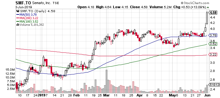 Gold Fields ist mit dem beeindruckenden Kursverlauf im Universum der Minenaktien nicht allein. Sehen Sie sich die kanadische Semafo an.