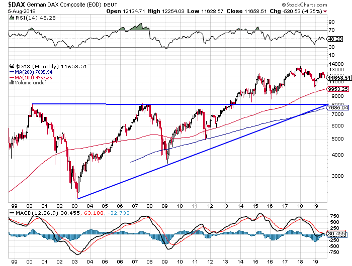Obwohl ich Ihnen nicht die Laune verderben will, präsentiere ich Ihnen auch den langfristigen Blick auf die deutschen Aktien. Antizyklisch ist der DAX ein Kauf in der Region von 8000 Punkten. Besonders, wenn Sie dann überall „Crash“ hören und Panik herrscht.