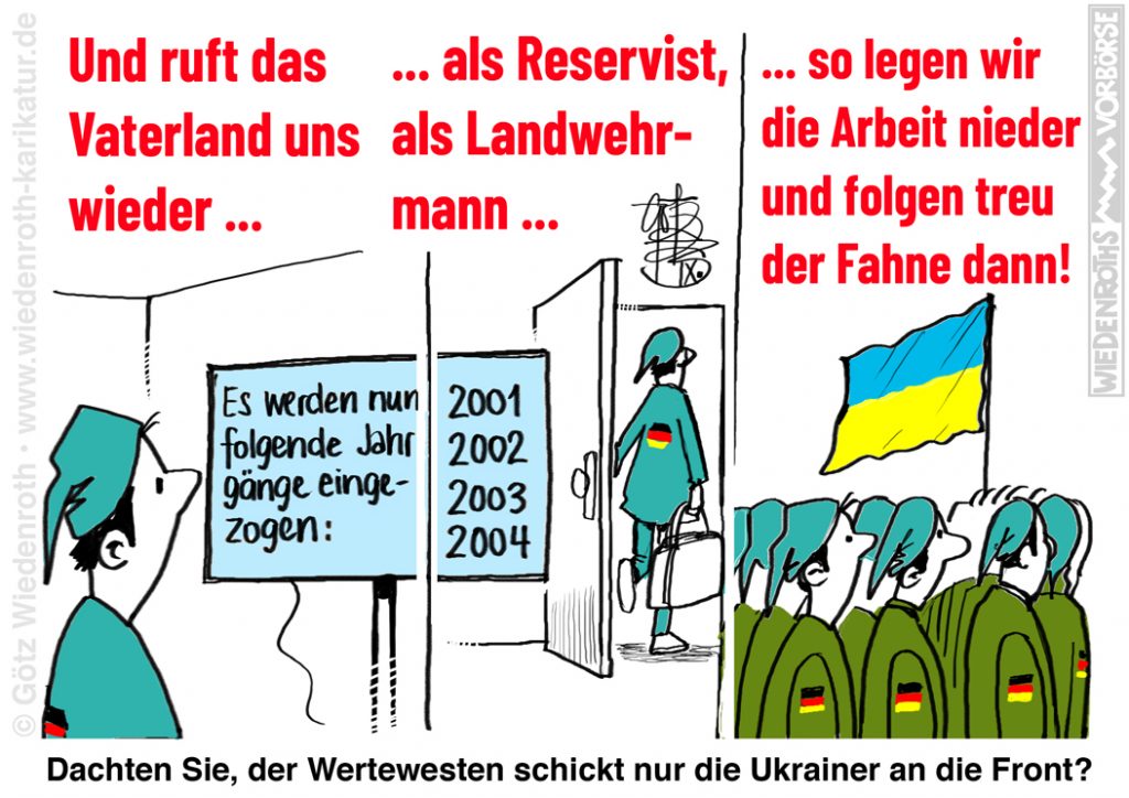 Jede Generation fällt einmal auf die Schnauze. Die eine früh, „unsere“ eher spät, hat dies aber reichlich verdient durch feiges und opportunistisches Wegducken sowie das Dulden extremer Kriegstreiber in den eigenen Reihen. Nach den Erfahrungen in der ersten Hälfte des letzten Jahrhunderts möchte man es nicht für möglich halten, dass Deutschland forsch auf Kriegskurs eingebogen ist – nur dieses Mal konsequent für fremde und gegen eigene Interessen. Politik ist immer nur Außenpolitik, wusste Otto von Bismarck, denn im Innern kann man alles irgendwie regeln. Heute leistet sich Deutschland eine apokalyptische „feministische“ Außenpolitik, vertreten durch eine sprachgestörte Lebenslauf-Fälscherin mit den intellektuellen Fähigkeiten einer mittelmässigen Klassensprecherin. Große Sehnsucht nach dem bedächtigen Kaiser Wilhelm II. kommt auf, wenn Plapperlenchen Russland mal einfach so den Krieg erklärt oder den chinesischen Präsidenten als Diktator verortet. Die Klimbim-Außenpolitik auf Konflikt- und Geisterfahrt gipfelt darin, vor einem der größten Dauerlügner aller Zeiten zu buckeln – dem korrupten und koksenden Kriegstreiber aus Kiew.